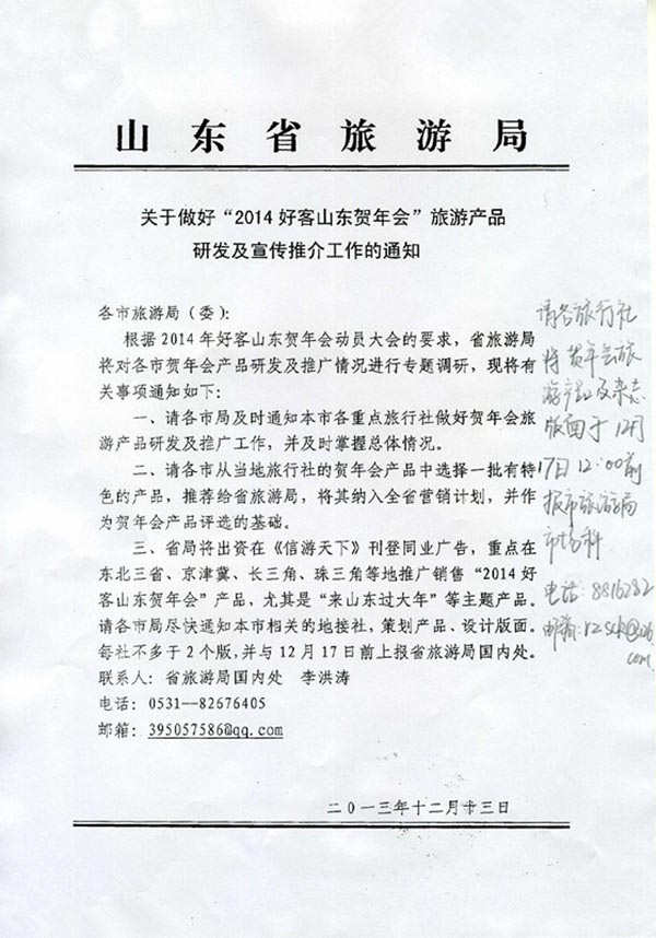 转发省旅游局通知(2013年12月16日)