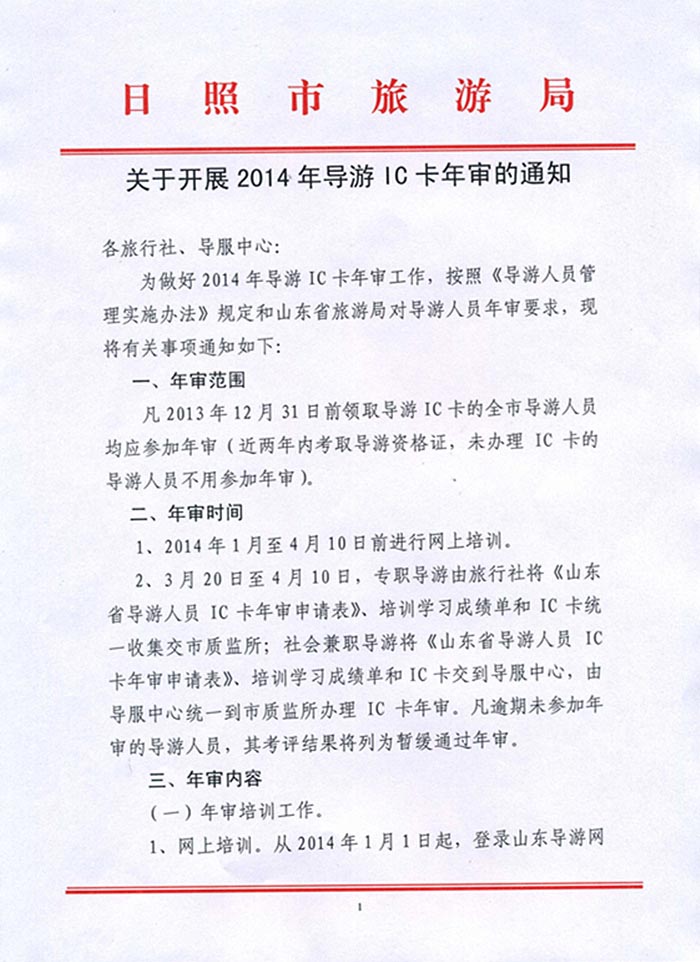 关于开展2014年导游IC卡年审的通知(2014年02月18日)