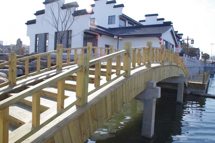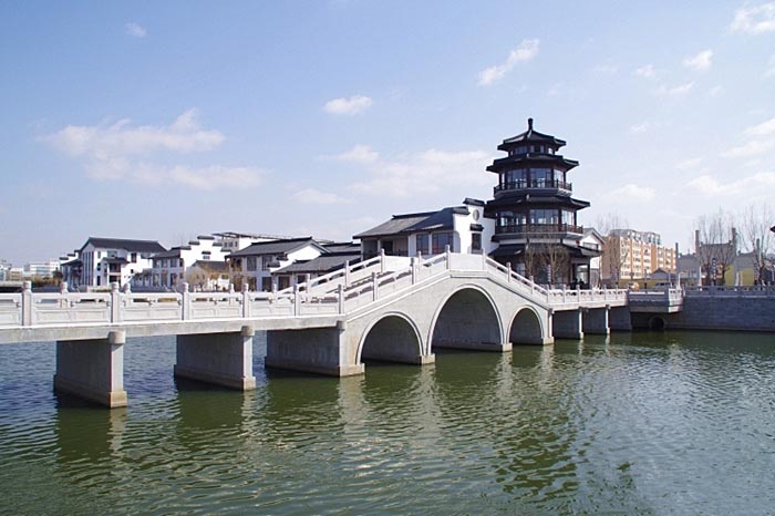 “海曲人家”,这里的一房一景、一石一木,都在古意盎然的氛围中,洋溢着日照悠远的文化底蕴。在传统徽派建筑的风格之上,又发挥了古典苏式建筑“一波三折”的特点,融入小桥、亭台、假山、竹林等元素,在空间上给人以深远、空灵之感。