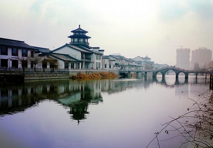 亭台、楼阁、水榭、石桥,青砖黛瓦、小桥流水,一处处海曲文化景观,一组组古典苏式建筑群,在老城区美丽的香店河畔,一条古典又现代的街。