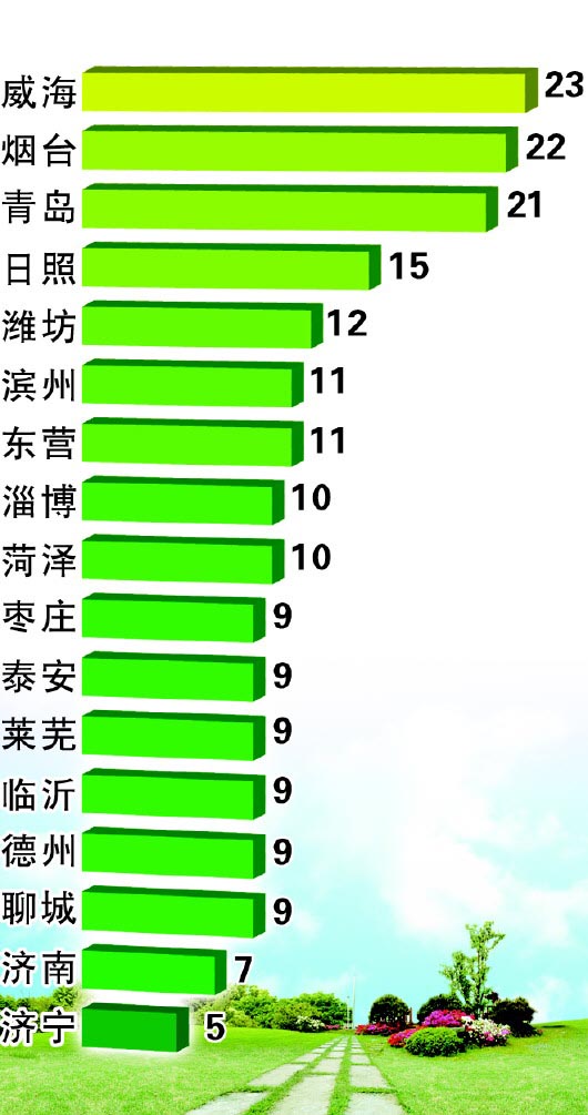 从山东省环保厅获悉,2月份,全省17城市“蓝天白云,繁星闪烁”天数最多的城市是威海,为23天,最少的是济宁,为5天。17城市“蓝天白云,繁星闪烁”天数全部增加,增加最多的是菏泽市,增加8天。