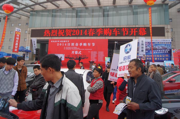4月11日上午,日照市2014年春节购车节在日照会展中心开幕,来自日照市的20余家洗车销售公司参加了本次活动,活动现场展出了各厂商的实用款车型和最新款车型,并提供购车咨询指南。本次活动由日照广播电视台、日照广播影视集团主办,日照市汽车服务行业协会、日照电视房车频道承办,日照市摄影家协会、青年摄影协会等社会机构协办。