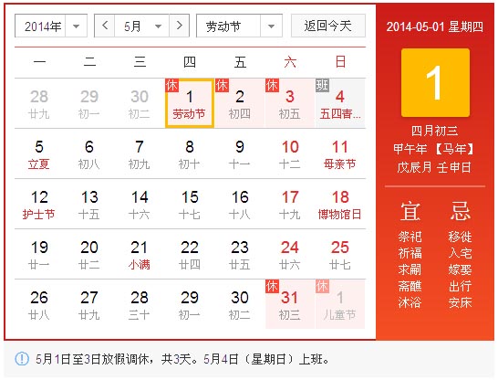 2014年五一放假安排出炉 网友“拼”出8天长假(2014年04月24日)