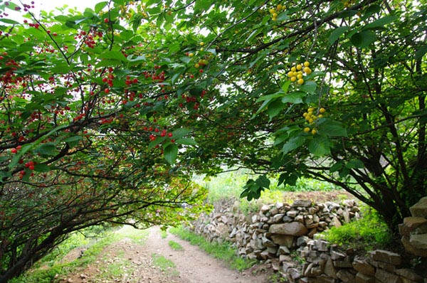 地处镇驻地以北十公里的董家楼村,位于盘龙河发源地,背靠天然氧吧大北山,溪水相映,群山环抱,风景秀美。村内清洁高质的水资源,加上土壤中富含的腐植酸及各种矿物质,孕育出果肉厚实、营养充分、味道甜美的“董家楼樱桃”,该村樱桃种植的历史更是可以追溯到清朝年间。目前,樱桃已发展成为该村支柱产业,成立樱桃采摘游专业合作社,全村共发展樱桃1000多亩,其中黄樱桃450亩,紫樱桃150亩,大樱桃250亩,是日照市樱桃种植面积最大的园区。该园区樱桃延续采用纯天然管理方式,不用化肥、农药,保持了樱桃果实口感佳、水分多、甜味足,营养高的“董家楼樱桃”风味。2013年该园区被评为“山东省精品采摘园”。5月8日,该村采摘园也将正式开园,近千亩樱桃笑迎八方来客。
