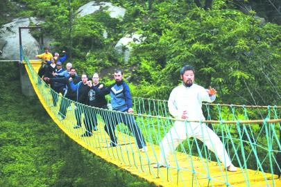 6月5日,五莲县大青山风景区,陈式太极拳实用拳法海外掌门人陈中华和弟子们练习太极拳。 借助大青山国际太极拳大赛的影响力,来此学习陈氏太极拳的国外太极拳爱好者越来越多。2013年大青山风景区接待国外太极拳爱好者300多人,今年已有来自美国、英国、德国、法国、澳大利亚、印度等30多个国家和地区的200多名国外太极拳爱好者来大青山学艺,感受中国文化。 陈中华于1985年在加拿大正式带徒,至今海外弟子已达3万多人,遍及世界各地。
