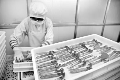 6月17日,山东荣信集团的员工正在加工出口到亚洲国家的产品。 记者从日照海关获悉,1—5月份,日照市企业进出口总值990.5亿元人民币,同比增长25.8%,进出口额和增速均据全省第三位;其中出口109.9亿元,同比增长13.9%;进口880.6亿元,同比增长27.4%。 (本报记者 惠雪烨 摄)