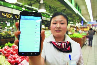 6月24日,我市一商城价格监测员程飞手机上的价格监测采集系统。 近日,市物价局公众微信“日照物价”开始试运行,全市各大商城、农贸市场的价格监测员每天9点前采集蔬菜、鸡蛋、肉类等近百种商品价格并上传,再由价格信息服务平台传送至网站、微博、微信等终端媒体,市民可随时查询,及时了解当天所需商品的价格。