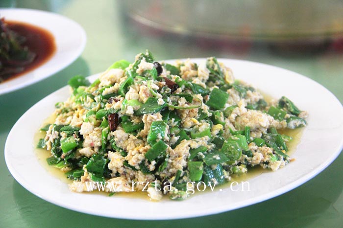 葱爆山鸡蛋:这里的葱都是农家自己种的,安全放心,鸡蛋也是跑山鸡下的,蛋黄红润黄亮,轻松夹起而不破,蛋白质营养高于土鸡蛋。本草纲目》记载:山鸡蛋补气血,食之令人聪慧,勇健肥润,并能止泻痢,除久病及五脏喘息等。具有氨基酸含量高、卵磷脂含量高、胆固醇含量低的特点。