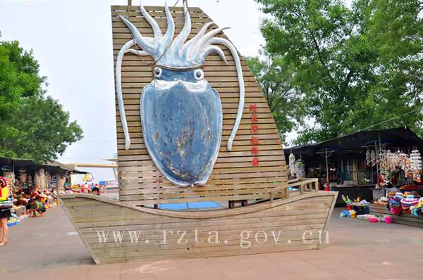 海神庙,利用五座太阳塔中的第四座设计,以日照当地一个真实的民间故事——“神龟救难”的传说为蓝本策划,在鱼骨庙遗址上修建的一处景点。庙内供奉着妈祖、东海龙王、东海神龟等,更为海洋文化增添了神秘色彩。