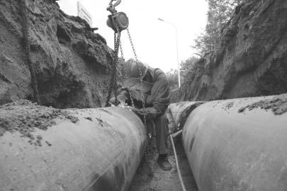 为确保新增用户今冬按时用暖,近日,市热力公司在确保施工安全和质量的前提下加快新增管网敷设工程进度。据了解,今年市热力公司供热服务范围内有54家新增用户,截至目前,有8家已完成管道施工,4家正在施工。并对热力循环、管网及低温死角等改造,让市民过一个温暖的冬季。图为市区山东路京泰盘龙湾小区(沙墩河景观路)管网敷设现场,工作人员正在进行管道焊接。