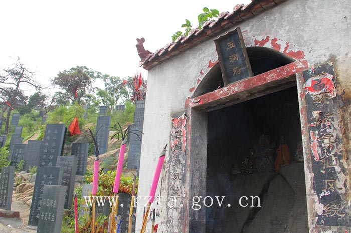 紧靠杏坊村东南方向有一座山峰,这便是五洞府山,五洞府山位于东港区后村镇东南部,海拔157米,属于九泉山的一个山峰,因传说山上居住着一位慈善济世的仙人—老师奶奶而闻名遐迩。每逢每月的一日、三日、六日、十五日和清明节、重阳、春节等重大节日,登山临府许愿、求仙观光者络绎不绝,该山被周围群众誉为“五洞仙府”。