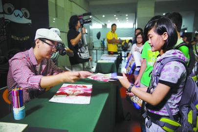 8月22日,动漫家现场为动漫迷签字。 当日,由市文广新局主办的第三届日照国际动漫节在市会展中心开幕。本次活动的宗旨是以健康的动漫文化娱乐大众,推动日照动漫文化理念普及,促进日照文化创意产业发展。并以打造“动漫狂欢盛宴”为目标,在前两届动漫节的基础上,内容更加丰富,节目更加精彩。