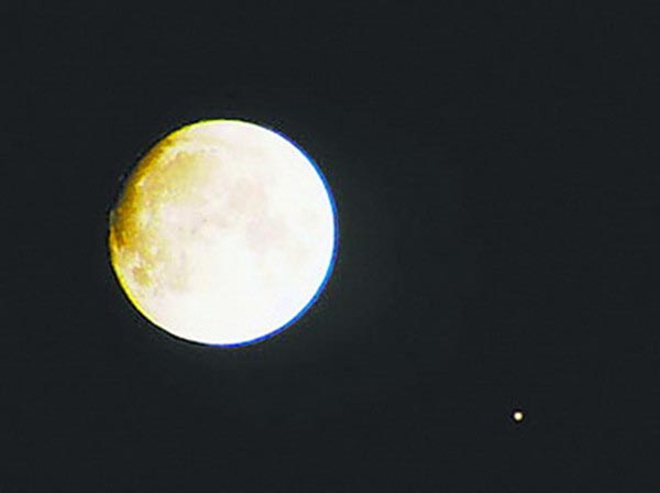 此次美丽天象,除用肉眼观测外,天文爱好者用小型天文望远镜观测“火星合月”,效果更佳。透过望远镜,火星看起来像个橙色的大球,非常美丽。