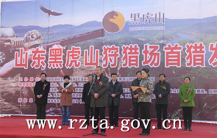 锣鼓喧天,鞭炮齐鸣,2月1日上午,华东地区首家也是唯一一家合法注册、标准化的狩猎场——山东黑虎山狩猎场举行首猎发布会。日照市旅游局副局长赵志超应邀出席了发布会。国内各大商会代表、上市企业、国内金融投资机构与上市服务机构负责人、日照市企业家代表以及全国各地50余家新闻媒体记者,共计400余人共同参加了首猎发布会。