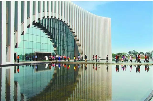 日照市城市规划展览馆位于日照市海曲东路北侧,水上运动基地南门停车场以西,奥林匹克水上公园内,项目用地面积约2公顷,总建筑面积约8000平方米。他临近植物园,犹如一片水中花园。