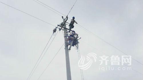 三庄供电所电力人员正在高空作业