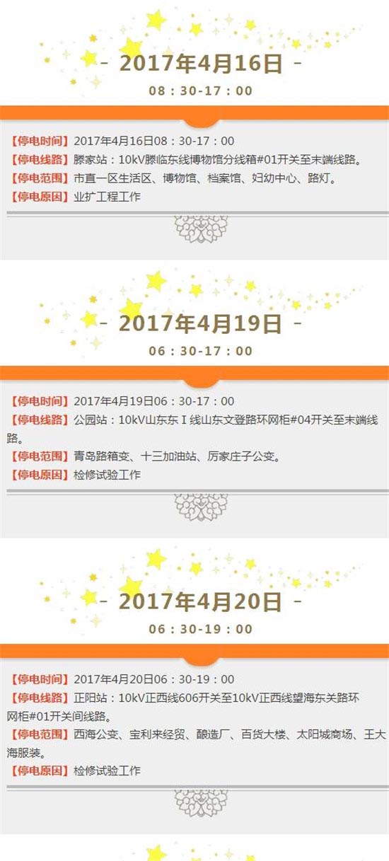日照4月份停电信息,看看有你家吗(2017年03月31日)