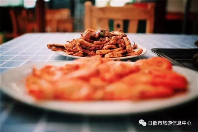 鱿鱼,也称枪乌贼、柔鱼,营养价值很高,是名贵的海产品。它和墨鱼、章鱼等软体腕足类海产品在营养功用方面基本相同,都是富含蛋白质、钙、磷、铁等,并含有十分丰富的诸如硒、碘、锰、铜等微量元素的食物。日照的烤鱿鱼或者酱炒鱿鱼很多,一定要尝尝。