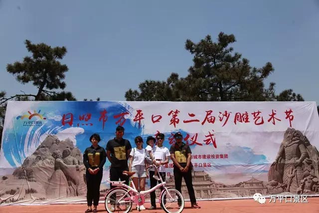 5月28日,端午假期第一天,万平口第二届沙雕节正式开幕。日照市旅游发展委员会副主任赵志超,日照市城市建设投资有限公司副总经理、日照市文化旅游集团有限公司总经理宋红旗,日照市文化旅游集团公司副总经理、日照市万平口景区管理运营有限公司经理李鑫,杭州在简文化艺术策划有限公司沙雕创意总监宋其凯参加了此次开幕仪式。随后“创意·欢乐”家庭沙雕制作大赛开始,比赛取得一等奖的家庭获得捷马自行车一辆。
