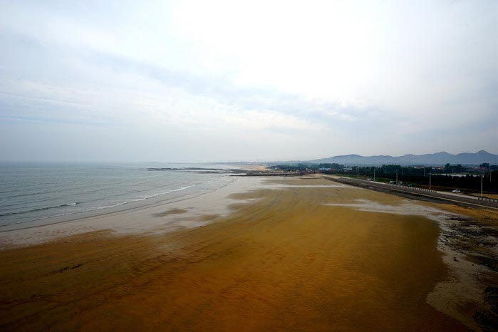 第四海水浴场就在任家台礁石的旁边,很奇怪这里独特的地貌,沙滩和礁石泾渭分明,从礁石遍布的地方只要走几步,就可以来到平整干净一望无际的沙滩。第四海水浴场在森林公园外面都是免费的部分,沙滩平整,沙子特别细腻,第三海水浴场人气最旺,但是那里的沙子可没有这里细腻。