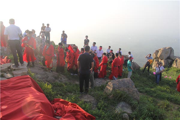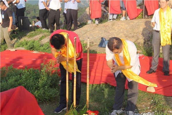 7月12日上午,由市旅发委、海洋文旅公司、涛雒镇政府、市太阳文化研究会联合举办的2017中国•日照太阳文化节暨祀日大典在天台山举办。日照市市委、统战部部长、市太阳文化旅游度假区管委会主任杨留星,市旅发委主任、市太阳文化旅游度假区管委会副主任王均波,市太阳文化旅游度假区管委会副主任、山东海洋文旅公司党委书记董事长总经理赵东江,市旅发委副主任赵志超等领导出席开幕式。太阳文化旅游研究专家学者代表,市有关企业、金融机构、媒体、旅游协会组织负责人,涛雒镇部分村党支部书记和人民群众等300余人齐聚天台山,为太阳祝寿祈福。