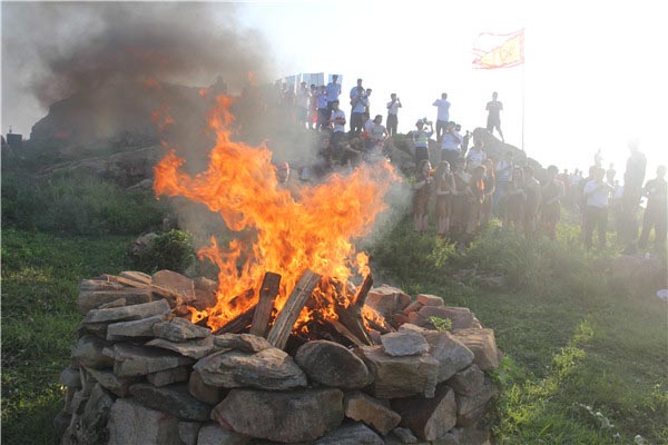 早上6:38分,祀日大典在山清水秀、灵气自生的人间仙境—天台山主峰正式开始,此次祀日大典分敬献贡品、燔柴祈日、敬上信香、宣读祭文、顶礼膜拜、祀日乐舞等9个环节,大典由市太阳文化旅游度假区管委会办公室副主任、涛雒镇党委书记厉华珍同志主持,市太阳文化旅游度假区管委会副主任、山东海洋文化旅游发展有限公司董事长、总经理赵东江同志作了开场致辞,市旅发委主任、市太阳文化旅游度假区管委会副主任王均波同志宣读祀日祭文,全体宾客与典仪人员一起行“太阳礼”,集体祈福。