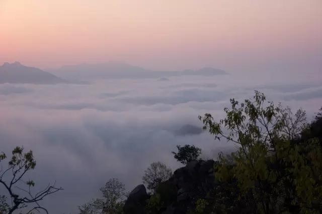每年到了雨季的时候,阵雨不断,每次雨一停,大青山上的云雾就从藏匿的山谷汹涌而来,开始的时候雾像是薄纱,又像是炊烟,她轻轻的抚摸着每座山坡,瞬间就淹没了眼前的一切。此刻我正在国际大酒店的五楼练拳,向下看是白茫茫的云海,再向上看耸立山峰上的城堡若隐若现,好像空中楼阁,又犹如滔滔江水中的一叶扁舟。远远望去,有一种山在云中飘、人在画中游的感觉。