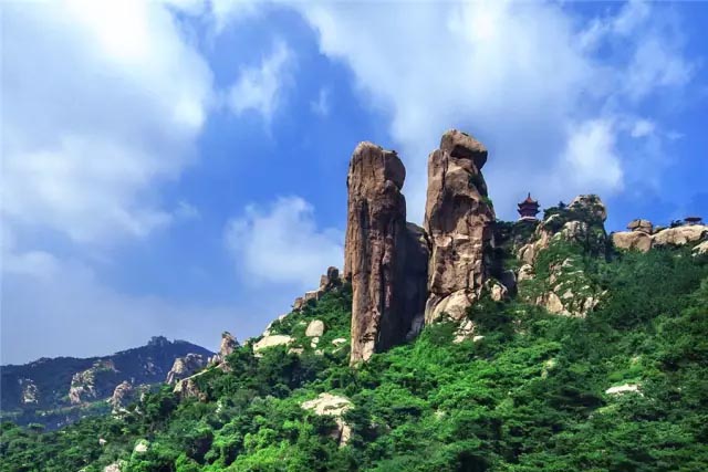 五莲山透着人文的气息,而九仙山则更显大自然的狂野与细腻。似乎,游客们更多期待深秋,那是落叶缤纷,红枫树被风吹落,满山遍野的色彩,总是说不出的浪漫。在情侣峰上,目光跨过鹊桥,远处的树木也渐渐自成一色。
