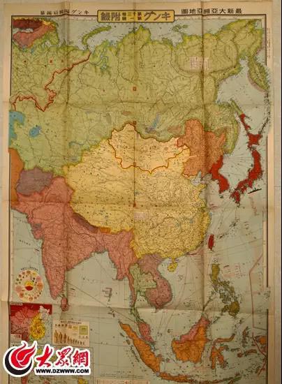 在陈长峰收藏的与莒地有关的抗战史料中,有一册日本“昭和14年8月”号《历史写真》画报,该画报是民国二十八年,即1939年8月份发行,其封面图片是三名身穿黄色军装的日军士兵在莒县城内张贴“大东亚共荣圈”字样的宣传画,日军身后有两名身着中国平民服饰的青年男子,即是当时的“汉奸”,该画面上有蓝色琉璃瓦覆顶的庙宇及民居等建筑,反映了上世纪30年代莒城风貌,这期画报的封面左下角有红色的“山东莒县城内宣抚班之活跃”字样,像以上这样与莒县抗战历史有直接关系的日军侵华史料,在近80年后在莒县面世。
