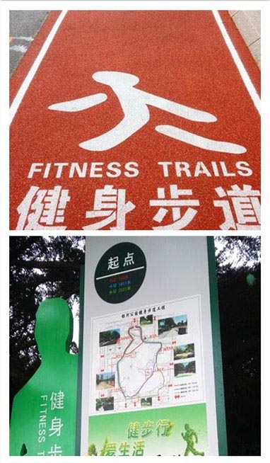 公园里的健康步道分大、中、小环进行建设,共4000余米。此外,在健康频道沿线,每隔50米还设置了一处运动标识牌,标识健身者在行走过程中所走的距离和所消耗的能量。