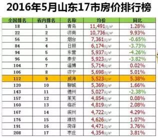 而在2016年5月份(本轮房价上涨之初),日照的排名还是全省第4位,列济南青岛烟台之后。一年多的时间,其他城市涨幅明显高于日照。