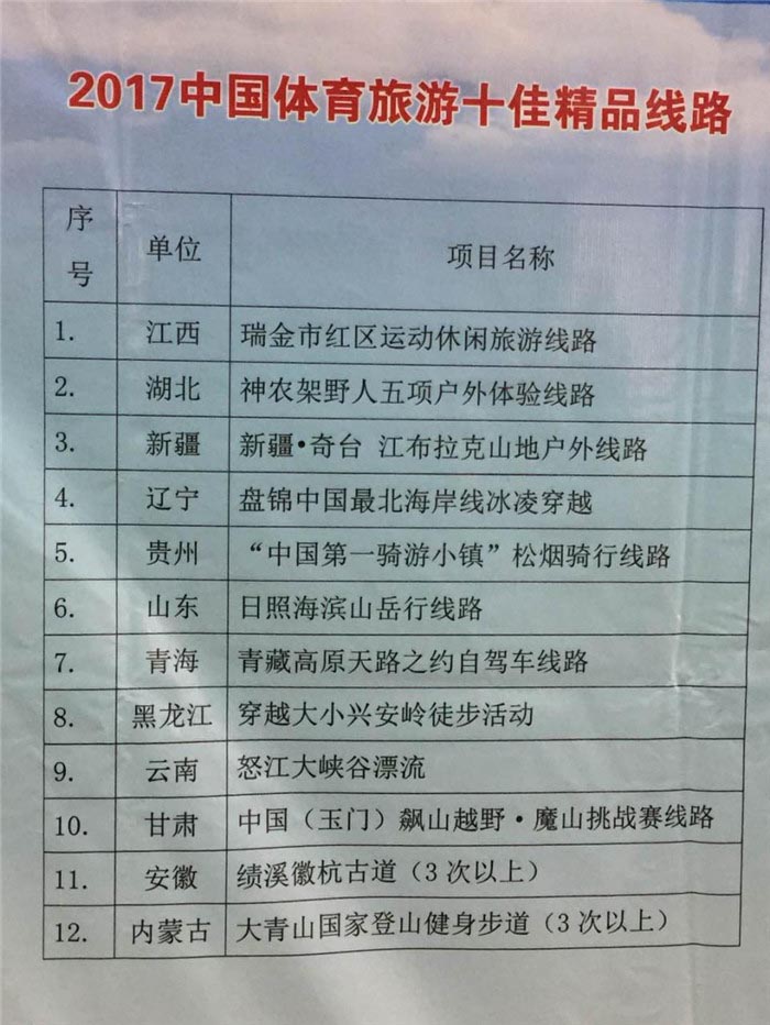 本届博览会共收到全国26个省份,总计546个推介项目,推选活动覆盖范围和推选项目数量均创历史新高。经过政府、院校和业界三位一体的专家组共同评选,179个体育特色鲜明、旅游要素丰富、文化内涵深厚、具有引领带动作用的项目入围2017中国体育旅游精品项目名单,在此基础上分类推选36个十佳体育旅游精品项目(包括景区、线路、赛事、目的地)。日照“海滨山岳行”体育休闲旅游线路是目前山东省内的唯一一条体育旅游十佳精品项目。