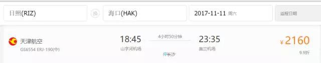 返程时间:海口13:30起飞,15:20抵达长沙;16:15起飞,18:05抵达日照。