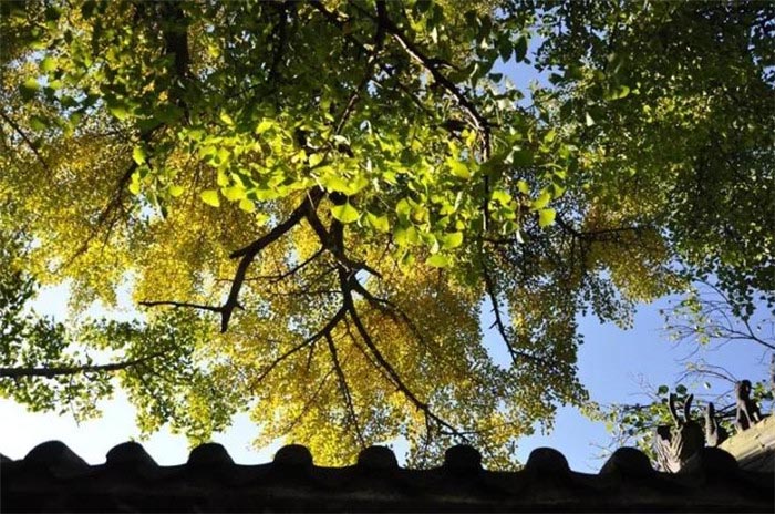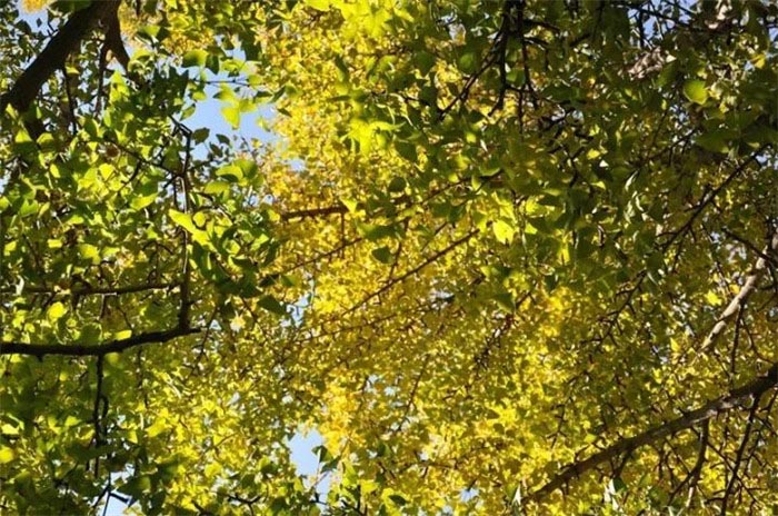 (这张照片拍的是银杏树下层的树叶,可以看出银杏树叶的边缘开始变黄了)