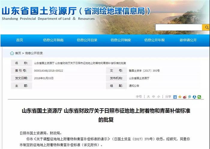 日照征地地上附着物和青苗补偿最新标准来了!(2018年01月05日)