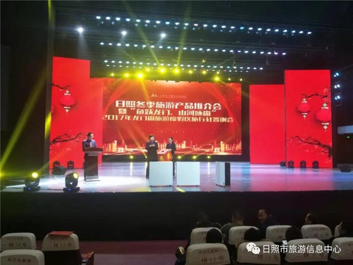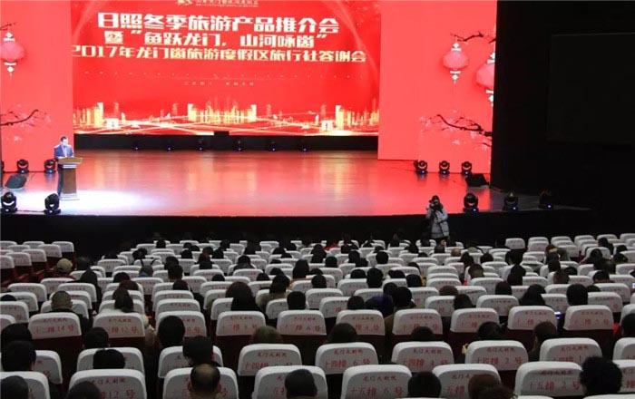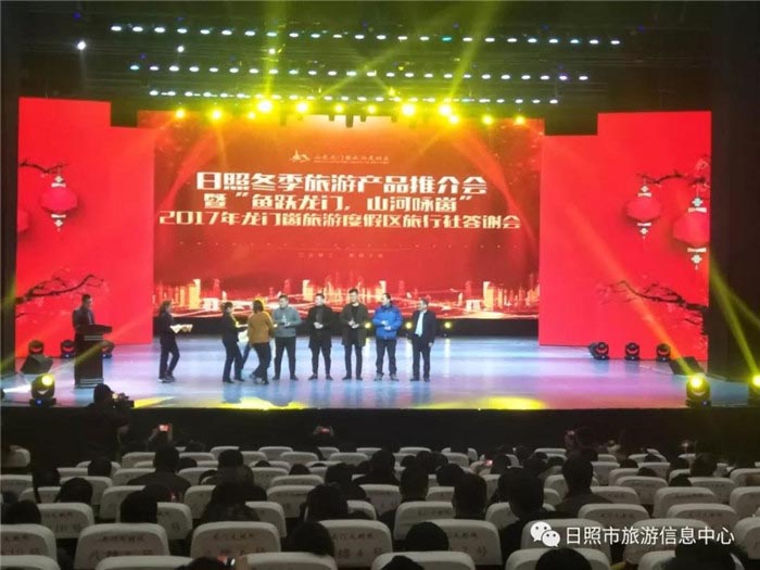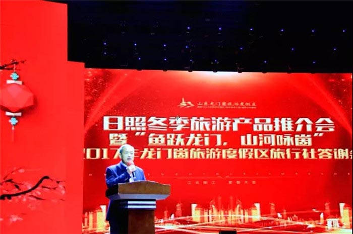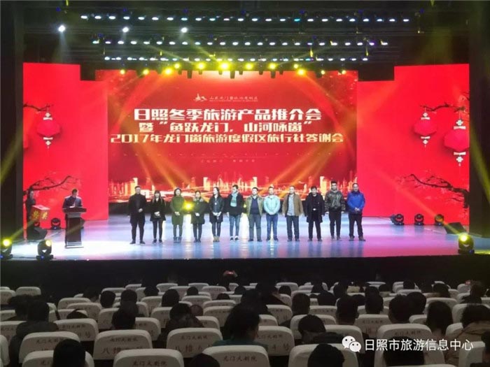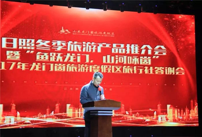 2018年1月20日,日照冬季旅游产品推介会暨“鱼跃龙门,山河咏崮”2017年龙门崮旅游度假区旅行社答谢会在龙门崮旅游度假区举办。日照市旅发委副主任赵志超、东港区旅游局局长郑丽丽、岚山区旅游文体局局长刘丽、东港区旅游局孙密爵副局长、莒县旅游局副局长王亚蕾、山东龙门崮旅游度假区董事长闫凤国等领导出席了本次推介会,来自全国各地300余家旅行社负责人、各景区代表、旅行社代表及新闻媒体的朋友共450余人参加了此次活动。