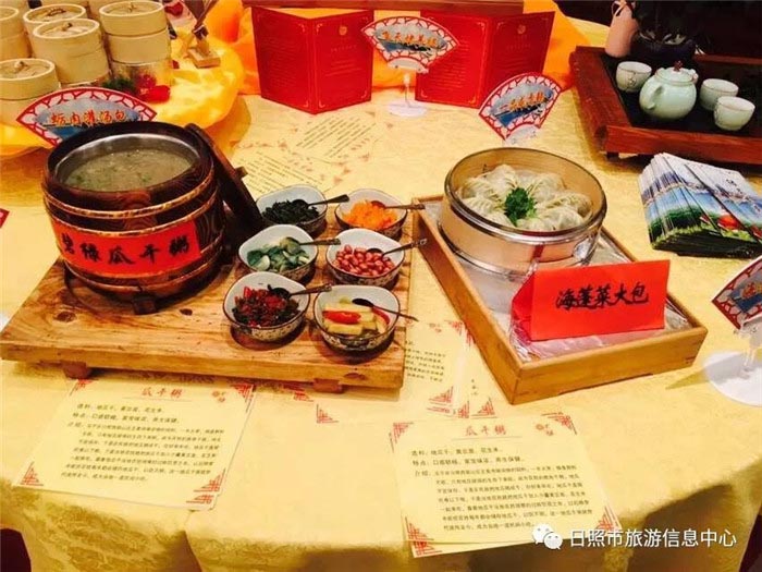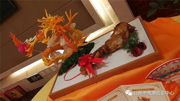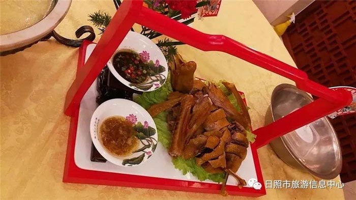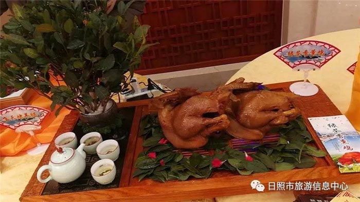 选用本地散养约400天的小公鸡和日照特产绿茶先卤后熏而成,口味醇厚,茶香怡人、营养丰富,日照绿茶素有北方代表茶之称,绿茶中含有丰富的维生素、矿物质和微量元素,保健价值极高,本道菜品入选为“到山东最想品尝的100种美食之一”。
